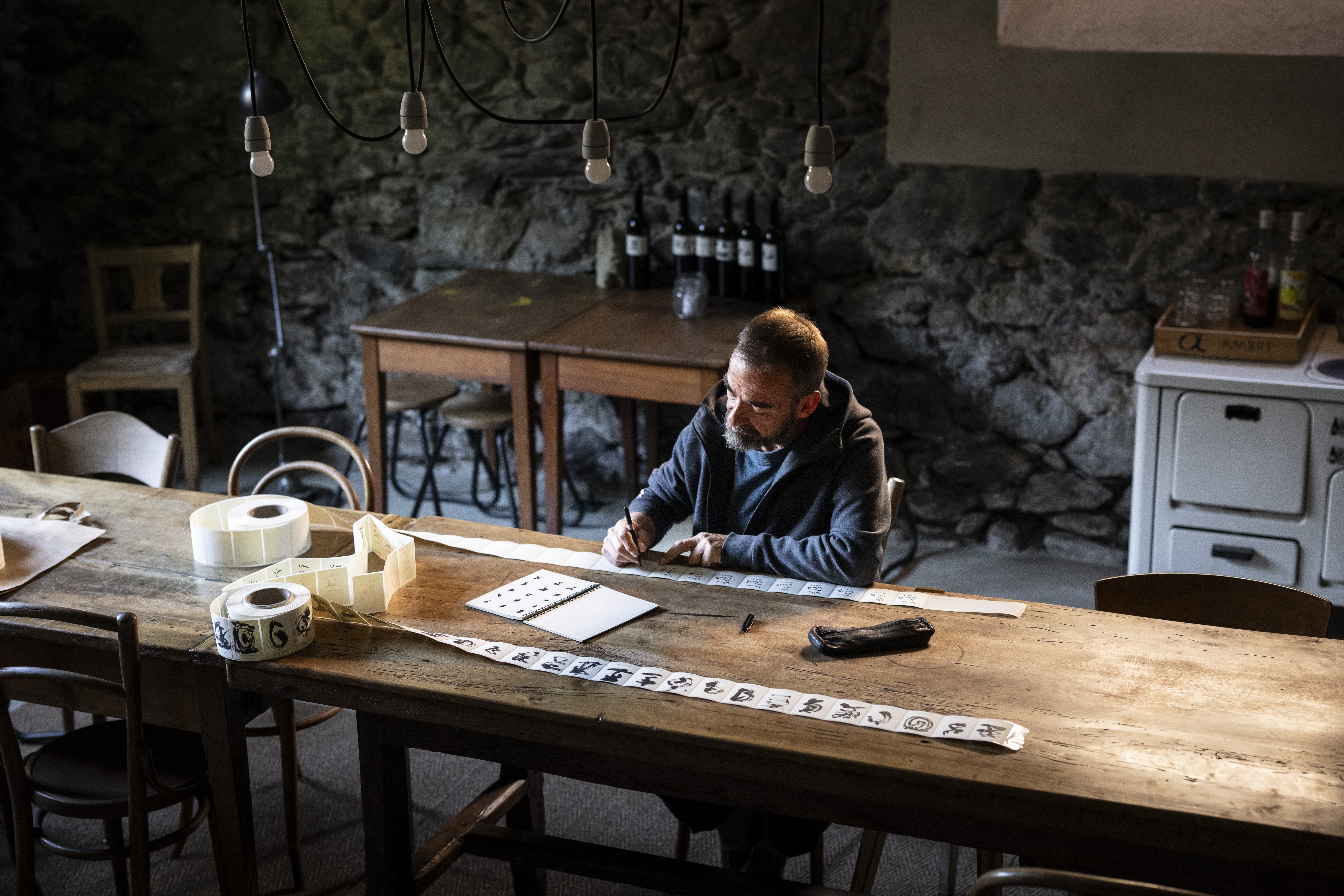 Christophe Abbet, vigneron éleveur, a créé sa petite entreprise familiale en 1985. Il est accompagné de Theo Abbet.